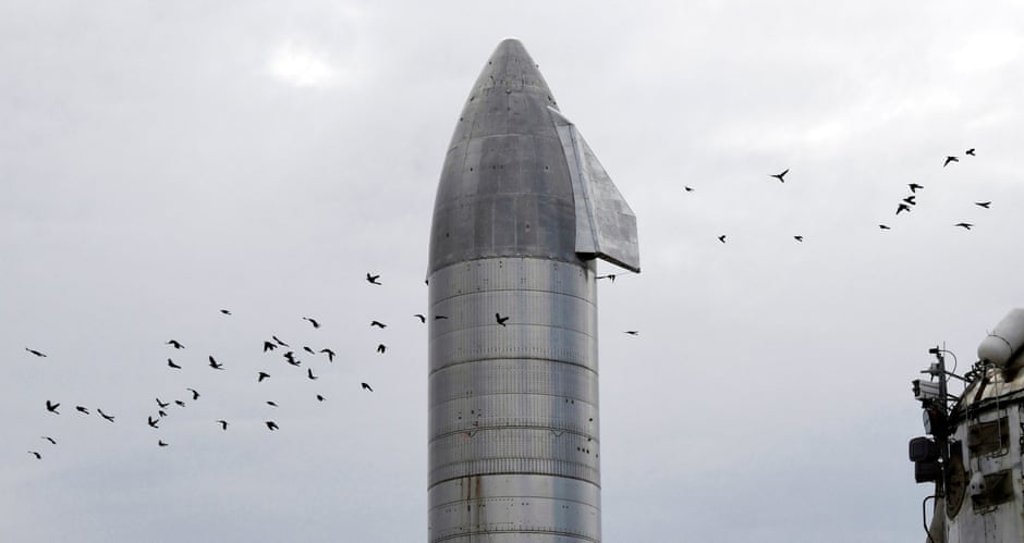 | Os pássaros passam sobre a Starship SN8 da SpaceX em 4 de dezembro, dias antes de um lançamento de teste em Boca Chica, Texas. Foto: Gene Blevins/Reuters |